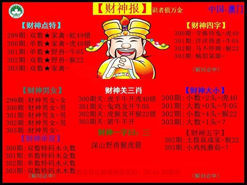 | 302期:【前后四肖】开:猴22准 前【兔鼠龙牛】后【猪鸡狗猴】 |