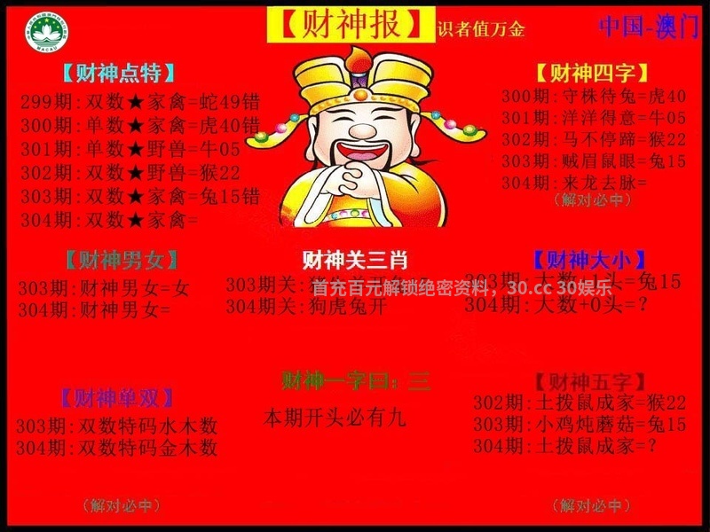 | 303期 | 羊 | 6尾 | 0头 | 开兔15 |